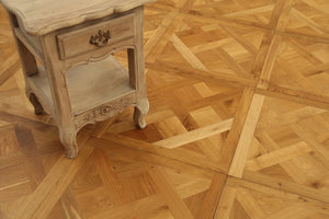 Elegant oiled and brushed parquet flooring, which evokes a sense of warmth and comfort. With its striking patterns and contrasting visuals, parquet flooring is classic.